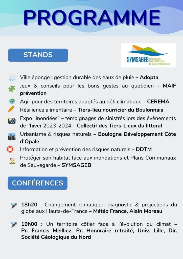 Un rendez-vous unique pour comprendre, échanger et agir face aux défis climatiques et aux risques naturels, à la Mairie de Wimille, le 16 octobre de 17h30 à 21h. 🔹 Au programme :✨ Forum interactif : stands, jeux, conseils pratiques, expo “Inondées” et démonstrations.✨ 2 conférences inspirantes : sur… Read More